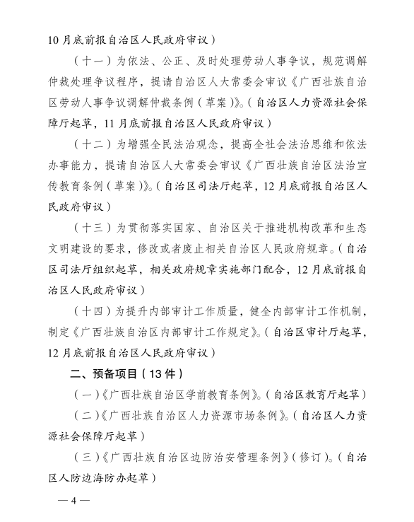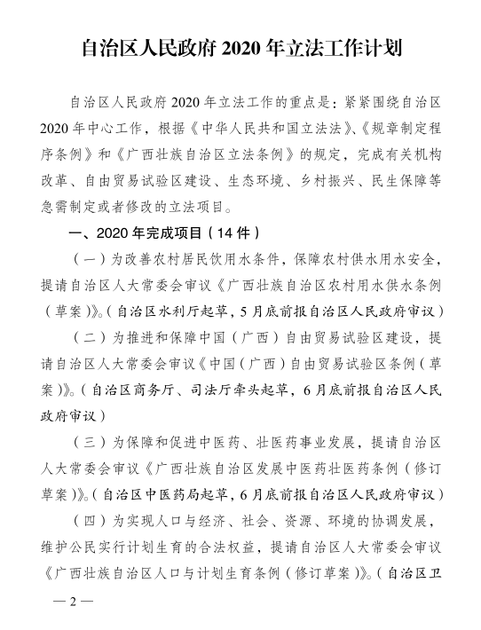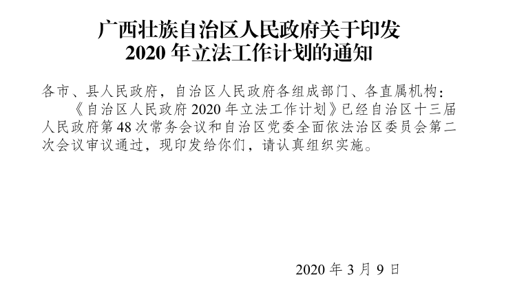 广西壮族自治区人民政府关于印发2020年立法工作计划的通知