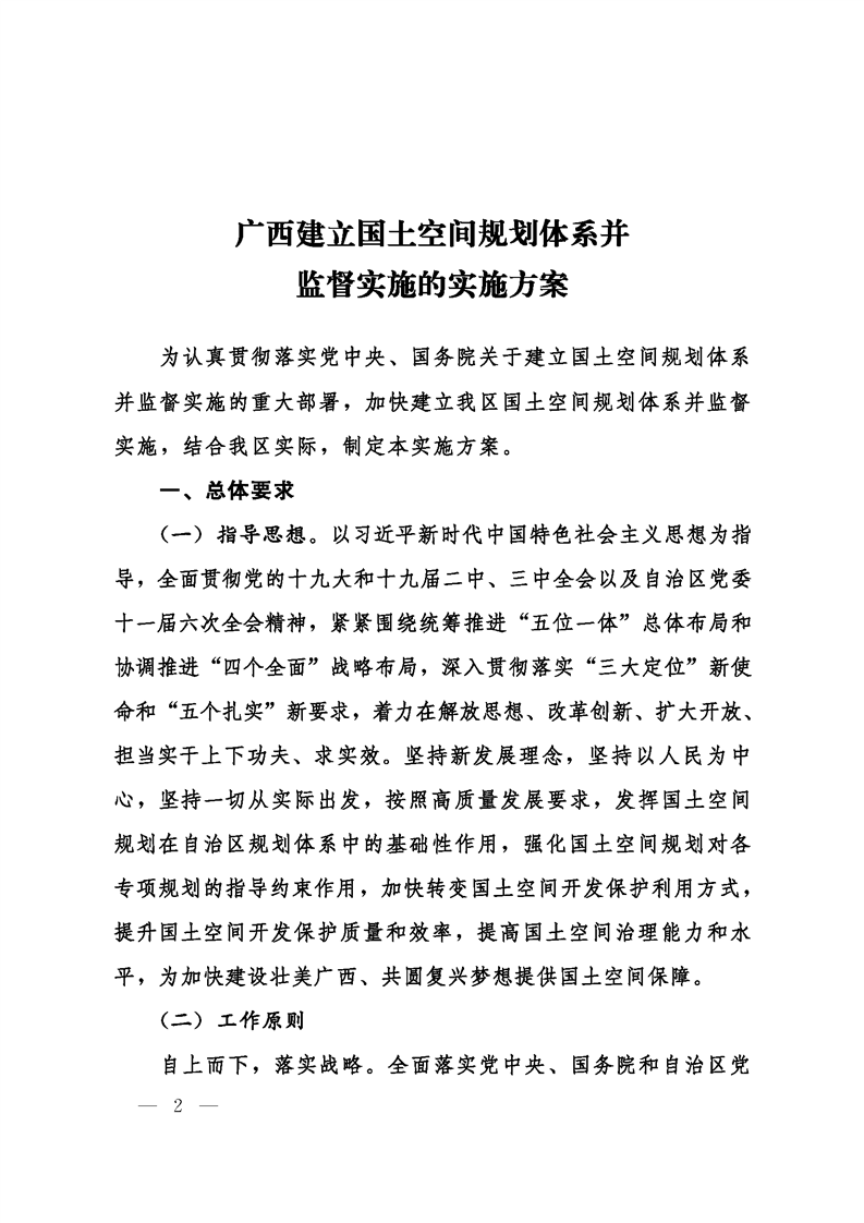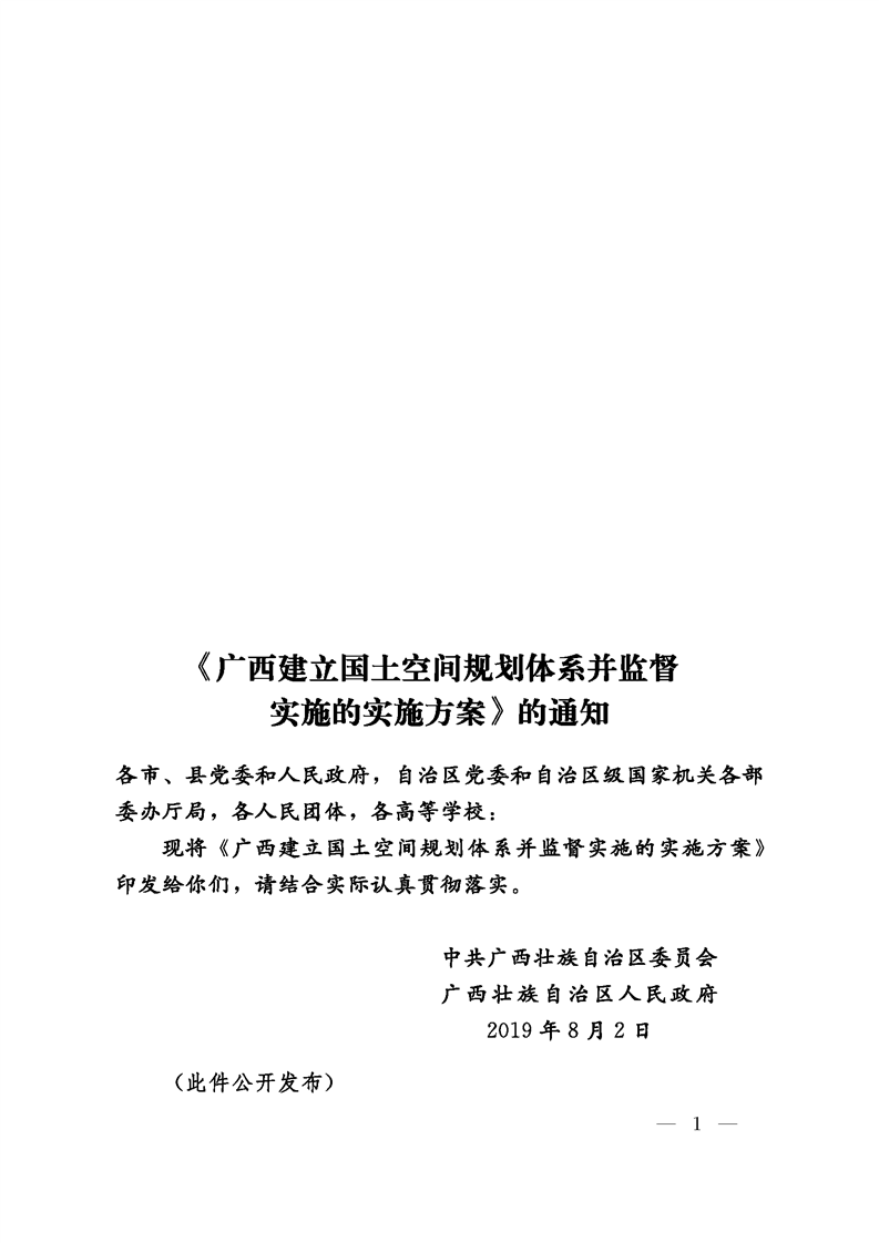 自治区党委 自治区人民政府关于印发《广西建立国土空间规划体系并监督实施的实施方案》的通知