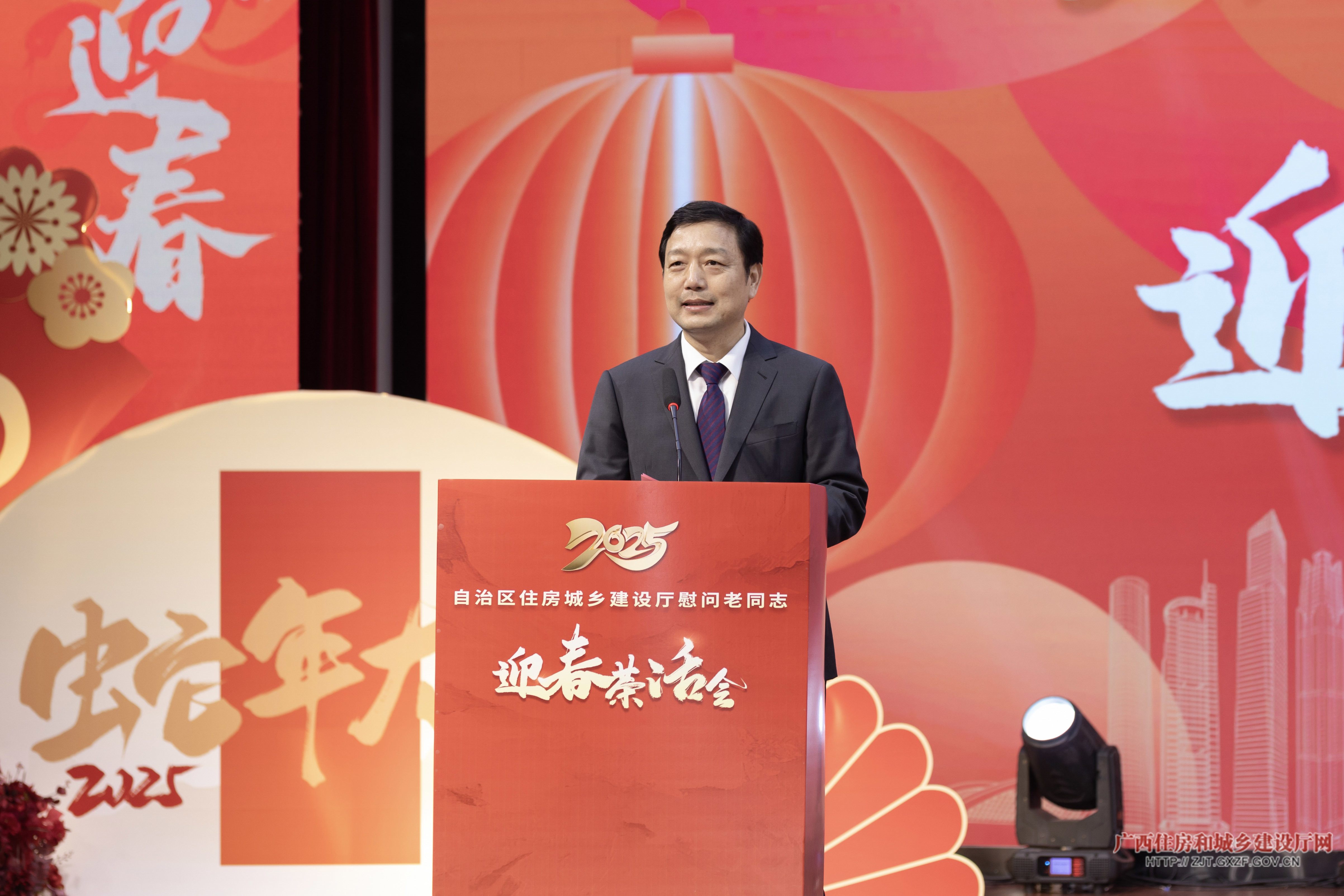 杨绿峰通报了2024年全区住房城乡建设工作成果。他指出,2024年,全区住房城乡建设系统深入学习贯彻落实党的二十大和二十届二中、三中全会精神,深入贯彻习近平总书记关于广西工作论述的重要要求,攻坚克难、担当实干,全力稳住行业经济“基本盘”,城乡宜居品质进一步提升,牢牢守住安全生产底线,行业营商环境不断优化,推进住房城乡建设各项工作取得明显成效。这些成绩的取得,离不开老领导、老同志长期以来的大力支持和鼎力相助。希望各位老领导、老同志们一如既往地关心和支持全区住房城乡建设工作,继续发挥政治优势、经验优势,为住房城乡建设事业发展增添更多正能量。