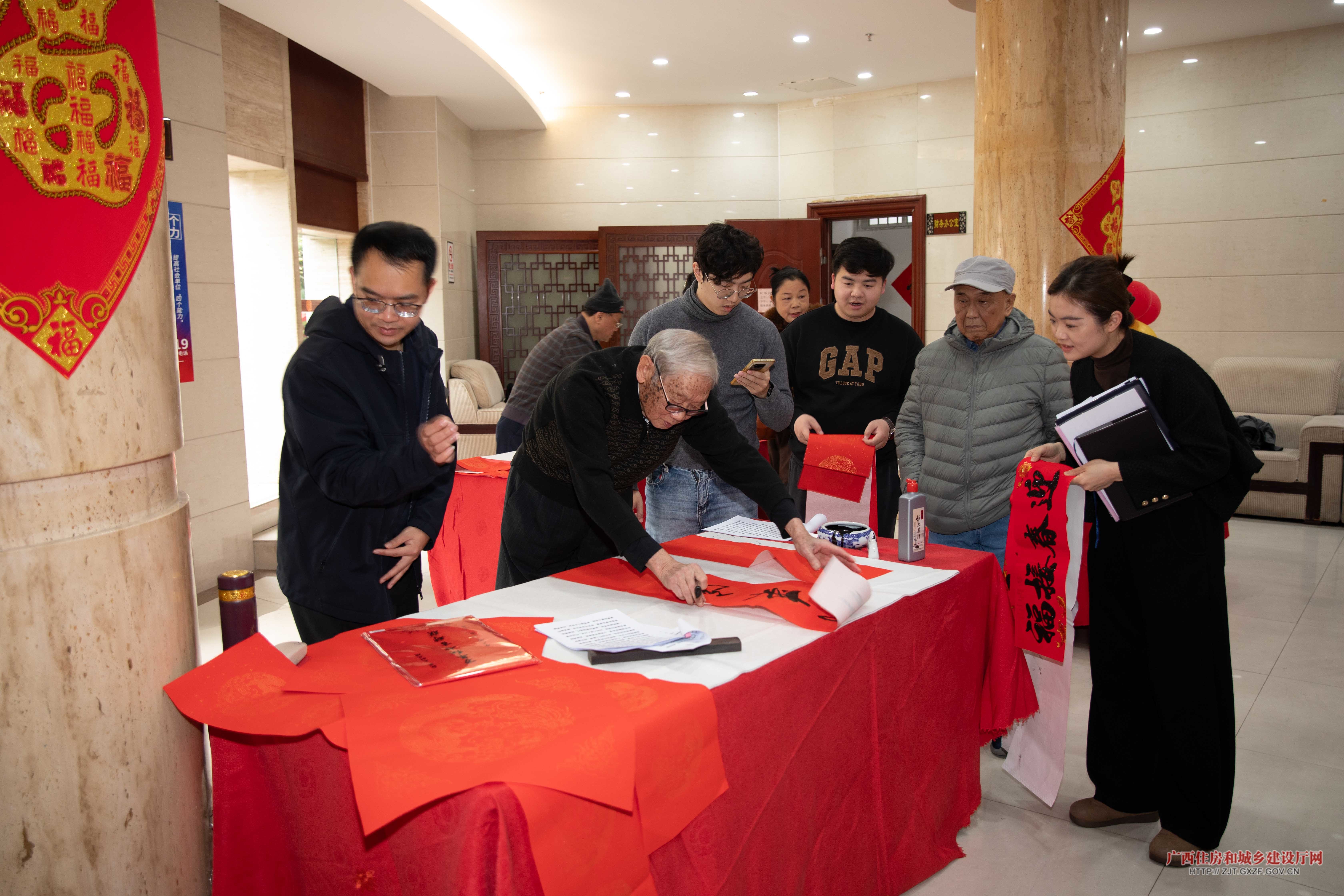 茶话会开始前,部分离退休同志和在职干部挥毫泼墨,创作出一幅幅精美的春联和“福”字贴,寄托对新年的美好期待。
