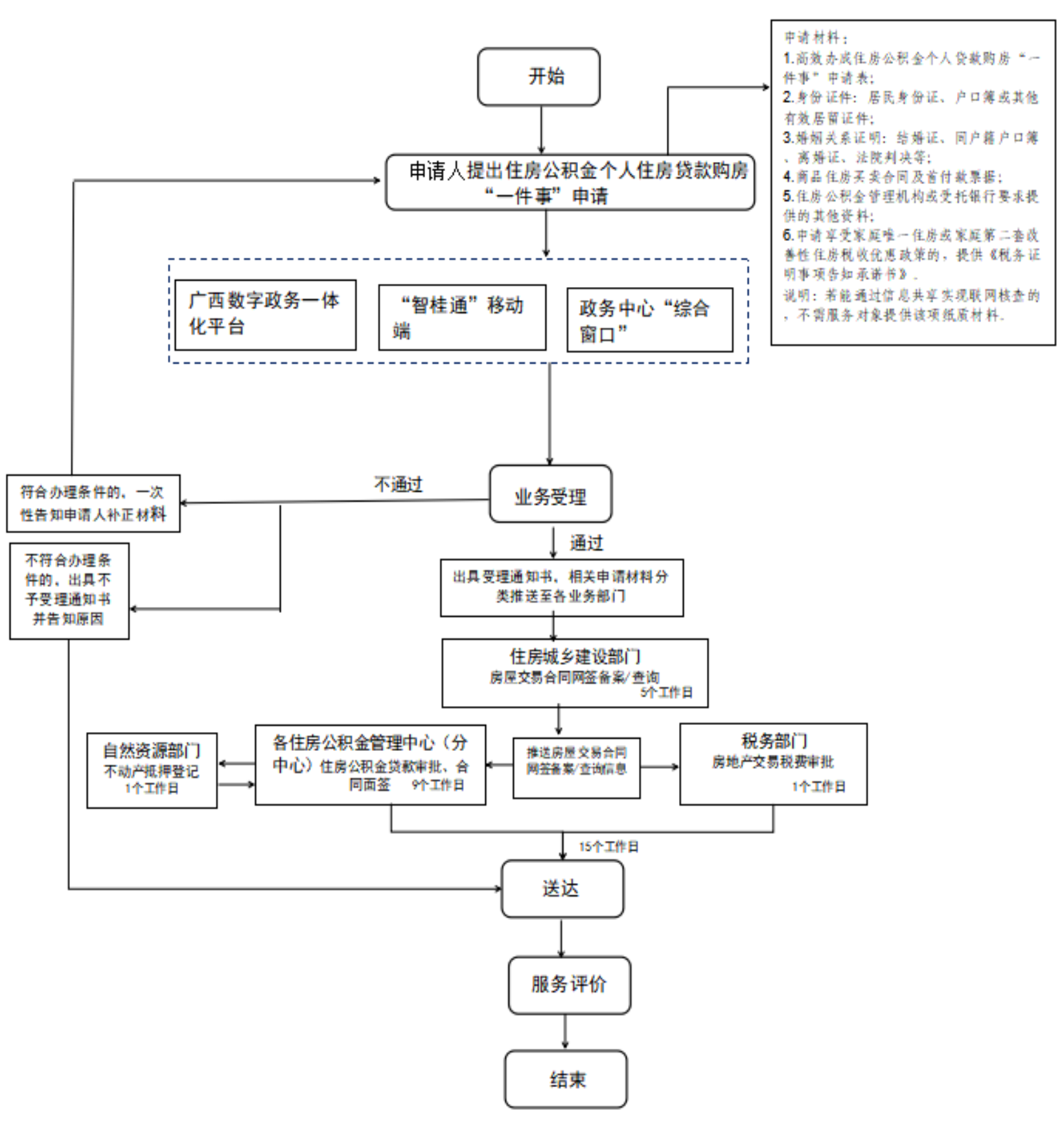 (三)优化办事流程。建立跨部门联动审批服务机制,明确各部门职责分工,强化bwin必赢(亚洲)app下载 与广西金融监管局、自治区高级法院,自治区公安厅、民政厅、自然资源厅,人民银行广西区分行、广西税务局业务协同,围绕住房公积金个人住房贷款购房“一件事”需要办理的政务服务事项统一受理、集成办理,将前置事项办理结果同步推送至下一环节部门,作为下一事项办理的证明材料,减少申请人参与的环节。