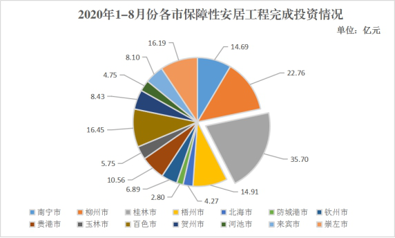 2020年1-8月份各市保障性安居工程完成投资情况如下图所示: