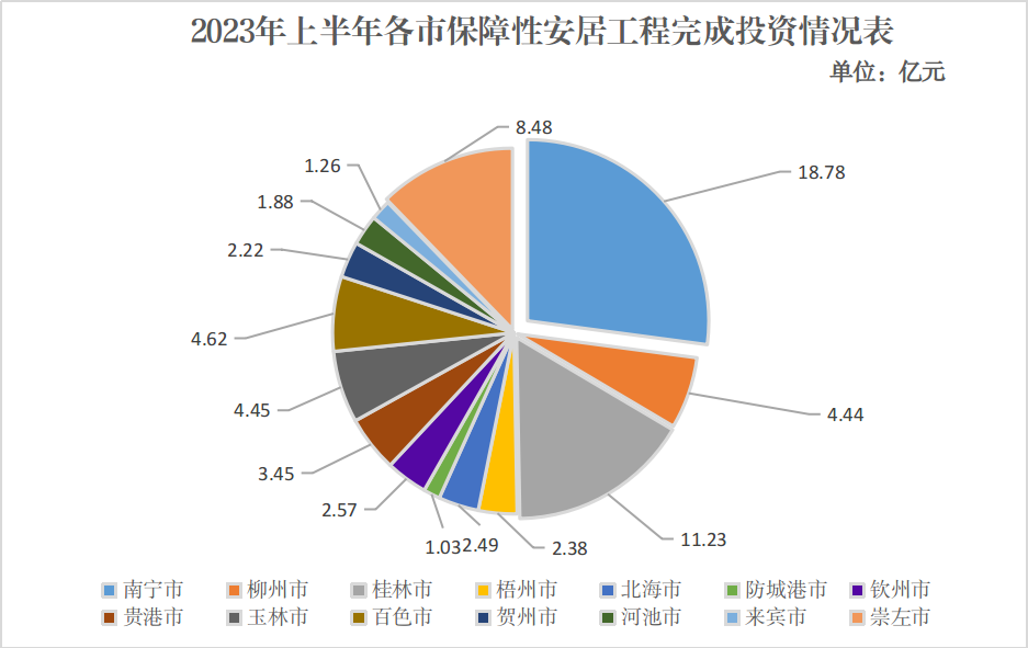 2023年上半年各市保障性安居工程完成投资情况如下图所示: