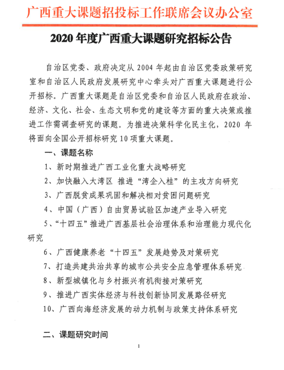 2020年度广西重大课题研究招标公告