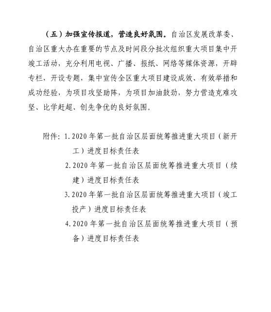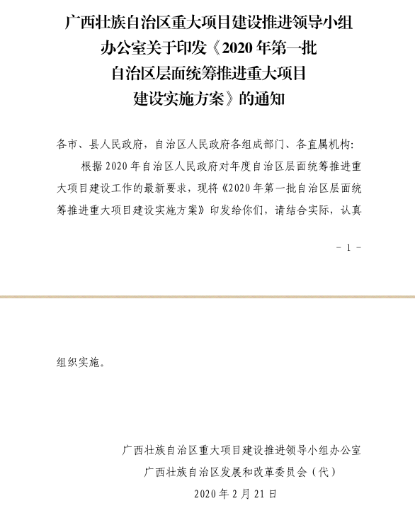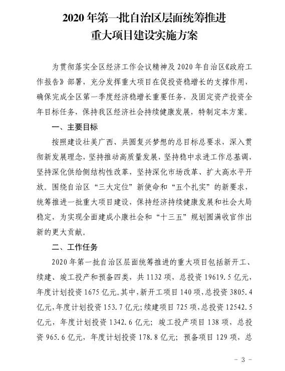 2020年第一批自治区层面统筹推进重大项目建设实施方案